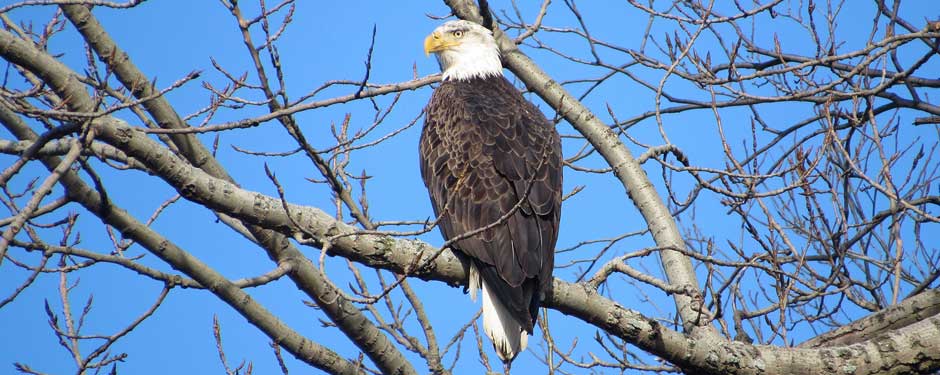 You don’t need to go to Alaska to see bald eagles. We have them right here in Cuyahoga Heights. They like to nest in the Ohio & Erie Canal Reservation along Cuyahoga River, the Towpath Trail and historic Ohio & Erie Canal. For many years, the only bald eagles spotted were occasional migrants passing through in spring and fall. The Cuyahoga Valley, with expansive secluded wooded wetlands and rebounding fish populations, has become an ideal place for eagles to feed and nest. So get out there and walk the trails. It’s a thrilling experience to see one of these magnificent, iconic birds!